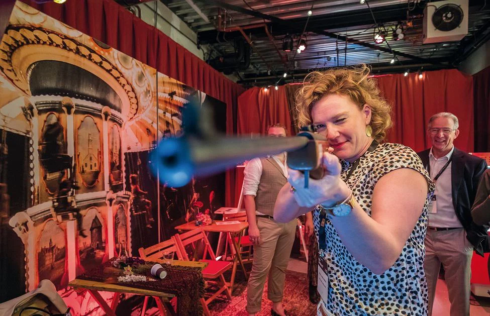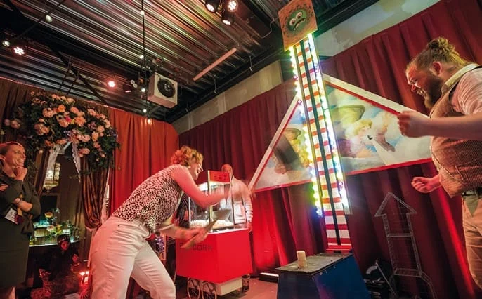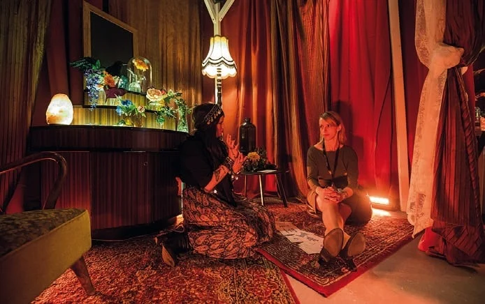 een event geld aan uit te geven. De kamer van de heilige huisjes was ingericht als een kermis compleet met waarzegster, een kop-van-jut en een schiettent waar je kon schieten op wat er in je eventprogramma zit waar je niet om heen kan, of toch wel? Waar wil je afscheid van nemen? En wat te denken van de kamer van verbinding, ingericht als een Franse bistro waar op het menu een verbinding stond die wel erg dichtbij kwam.