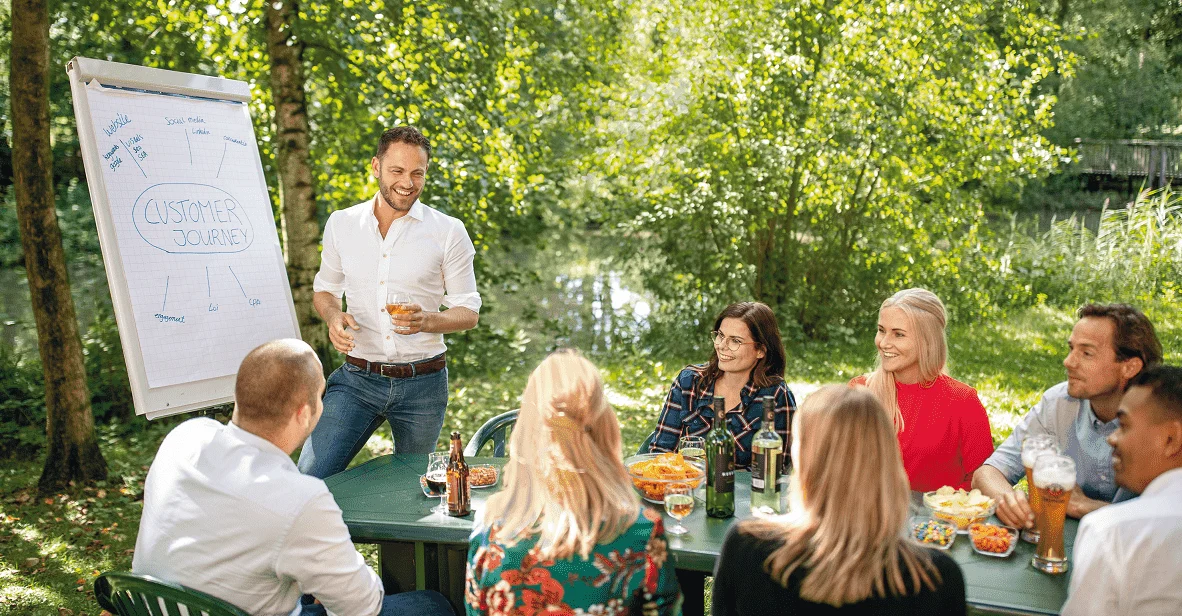 Sunparks Kempense Meren biedt een verblijf op maat voor zowel kleine groepen vanaf 10 personen als grote groepen tot 1.000 gasten. Het is de ideale uitvalsbasis voor uw teambuilding. In en rond het park kunnen er talrijke activiteiten georganiseerd worden om het beste in uw groep naar boven te halen. Natuurlijk kan er een programma op maat uitgewerkt worden. Het Business Center telt 6 vergaderzalen waarvan er 4 kunnen worden samengevoegd tot één plenaire zaal (tot 960 personen in theateropstelling). U heeft de keuze uit overnachten in een full-service hotel of het comfort van vakantiehuisjes. Het 3-sterrenhotel beschikt over 48 kamers en 2 suites.