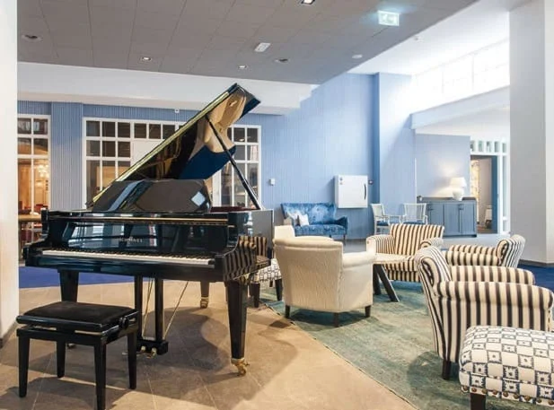 Grand Hotel ter Duin beschikt over vier zalen, die door middel van schuifwanden tot één grote zaal kunnen worden geschakeld. Op dat moment is er ruimte voor 200 stoelen. Uiteraard zijn de zalen flexibel in te delen. De audiovisuele faciliteiten zijn grotendeels mobiel, waaronder grote schermen. Jelle: “Er kan op deze manier snel worden ingespeeld op de wensen van de klant.” Naast de vier zalen zijn er ook twee boardrooms. Het hotel is ook exclusief te boeken. “We proberen ons altijd te verdiepen in de vraag ‘waarom is de klant hier?’ Hierdoor kunnen we altijd net iets meer doen dan dat er van ons verwacht wordt. Veel zakelijke gasten zien we daarom geregeld terug bij Grand Hotel ter Duin.”