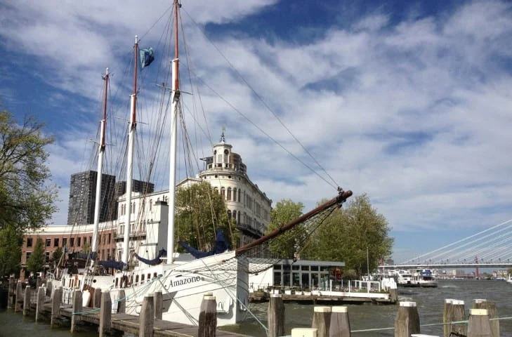 Vanaf haar ligplaats in de historische Veerhaven, aan de voet van de Erasmusbrug, maakt de Amazone vaartochten over de rivier en door het imposante havengebied. Van varende lunchbreak tot swingend avondfeest met uw medewerkers of relatie.