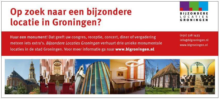 Bijzondere Locaties Groningen exploiteert vijf monumenten in en nabij Groningen. De ruimtes worden verhuurd als accommodatie voor diverse evenementen, zoals vergaderingen, diners, huwelijken, concerten, exposities en lezingen. Onze klanten zijn bedrijven, instellingen en particulieren die voor hun evenement een locatie met een meerwaarde zoeken. We zijn een professionele organisatie, maar met een zeer maatschappelijk doel: het in stand houden voor latere generaties van ons meest geliefde erfgoed.
