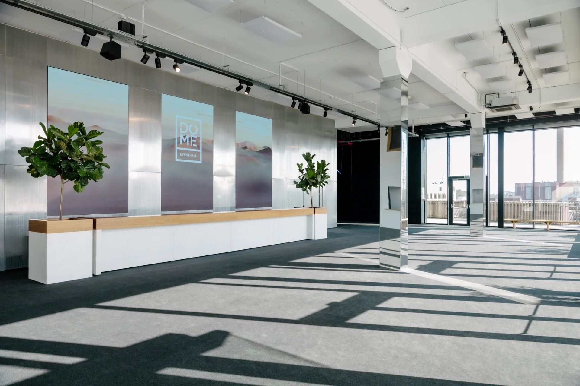 Dome Eventhall is een nieuwe evenementenzaal gelegen op het dak van Docks Bruxsel.