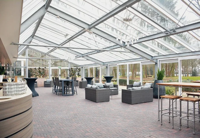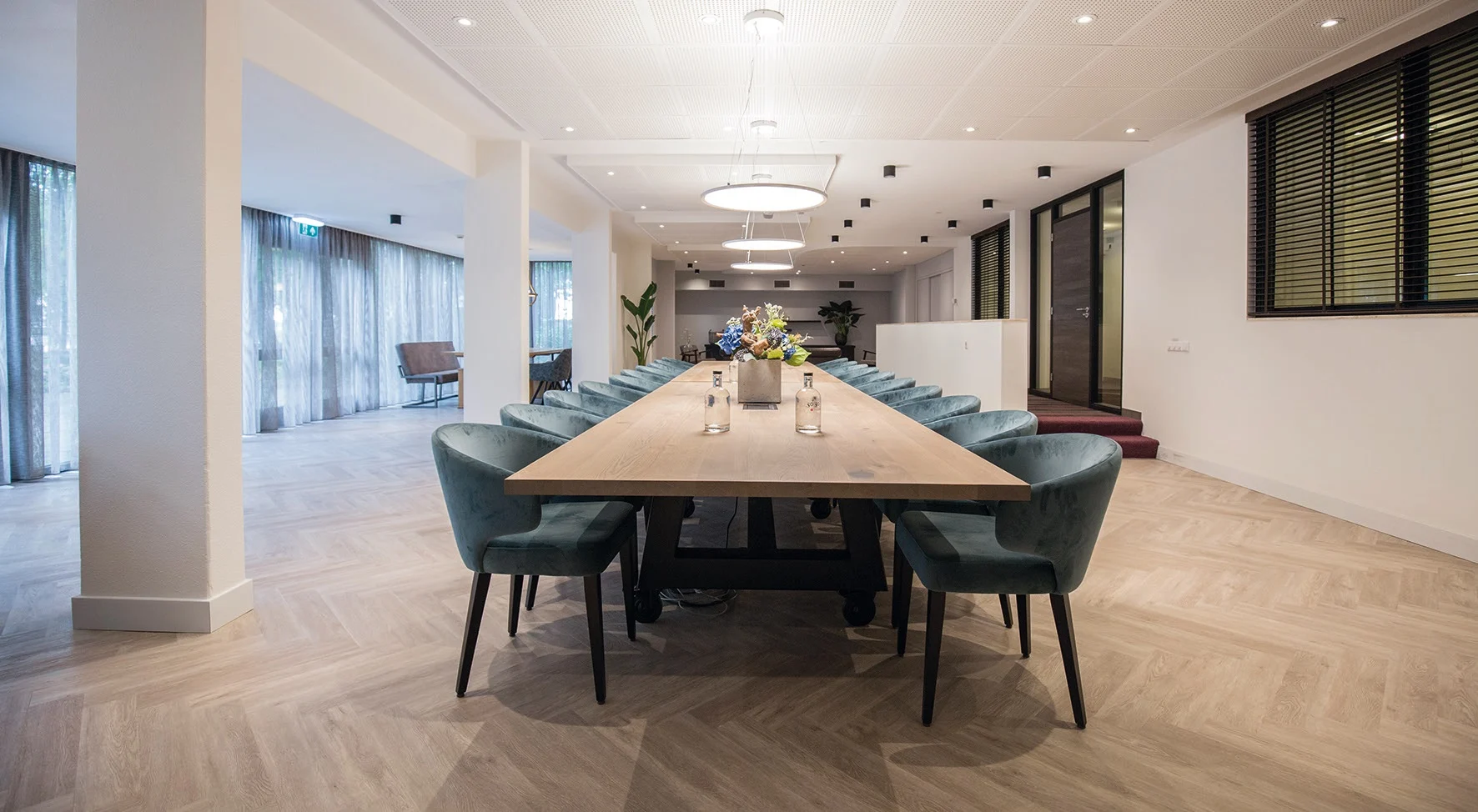 Wie voor de deur van 50|50 hotel Belmont uitstapt, kan zich erover verbazen: op een paar minuten van de snelweg zoveel rust en zoveel ruimte. Vonk: “Juist die ruimte maakt ons hotel zo aantrekkelijk, zeker in deze tijd van anderhalve meter.” En de ruimte heeft u ook in het hotel zelf. 50|50 hotel Belmont beschikt over tien flexibel in te delen zalen. In de congreszaal kunt u normaliter tot 300 gasten ontvangen. Deze zaal grenst aan de sfeervolle serre, waar u in alle jaargetijden kunt genieten van licht en ruimte. “U haalt buiten als het ware naar binnen”, zegt Smits. Uiteraard beschikken alle zalen over alle gewenste audiovisuele faciliteiten.