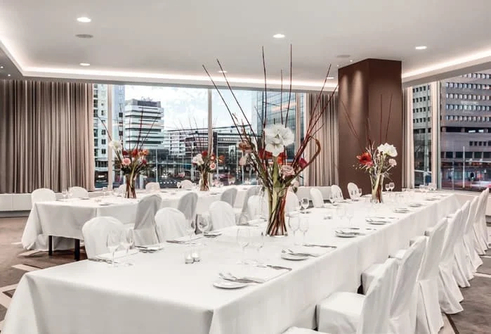 centraal station, de ideale locatie voor jullie volgende evenement. Het hotel wordt omgeven door restaurants, winkels en bezienswaardigheden, wat dit het perfecte startpunt maakt om alles te ontdekken wat Rotterdam te bieden heeft. Anouck: “Men kan profiteren van de nieuwste audiovisuele apparatuur, natuurlijk daglicht in alle vergaderzalen en een prachtig 180º uitzicht op het bruisende stadscentrum vanaf de Coolsingel Suite. Daarbij ligt het hotel op loopafstand van het Centraal Station met zowel metro station Stadhuis en tramstop Weena op een steenworp afstand.”