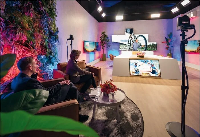 De grootste innovatie van 2022 is wel de Jaarbeurs Live App. Daarmee heb je geen papieren plattegrond meer nodig en verdwalen bezoekers nooit meer tussen de kramen. Net als bij navigatie in de auto kun je een route uitstippelen. En je kunt vooraf allerlei informatie bekijken. Eenmaal binnen kun je zien waar het druk is en wanneer en waar diverse events beginnen. Ze wonnen er al de internationale Digital Innovation Award 2022 mee. “Tijdens corona stonden de gebouwen leeg en daardoor konden we alle infrastructuur aanleggen voor de Jaarbeurs Live app”, vertelt Mayen. “Toen we weer voorzichtig open mochten begonnen we met een druktemeter, en uiteindelijk deze app. Tegelijk is dit stukken duurzamer dan info en plattegronden op papier. Samen met onze Jaarbeurs Studio, die ook tijdens corona ontstond, kunnen we nog meer beleving bieden, want dat is wat je als organisator wilt bieden: een event dat bezoekers lang bijblijft.” Elsje: “Met onze studio brengen we het beste van twee werelden samen in nieuwe hybride concepten. Je kunt vooraf online opwarmsessies organiseren en zo naar het live hoogtepunt toewerken. Én de sprekers van je live event ook weer studio content laten opnemen voor het na traject. Zo creeer je 365 dagen per jaar waardevolle ontmoetingen, live en online.”