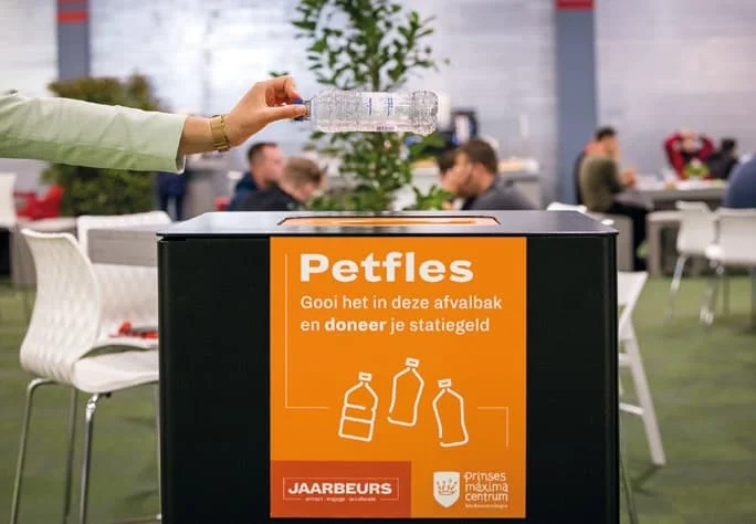 Corona betekende naast innovatie ook meer nadruk op verduurzaming. Jaarbeurs wil de meest duurzame congres- en eventlocatie van Europa zijn. “Zo kunnen we onze klanten inspireren”, vult Mayen aan. “We doen bijvoorbeeld meer dan ooit aan hergebruik. We zijn onlangs partner geworden van Doppers nieuwste watertappunten. In ons Beatrixgebouw hebben we watertappunten waar bezoekers hun flesje kunnen hervullen. Zo houden we verspilling van plastic waterflesjes tegen. We zijn ons aan het oriënteren om dit verder uit te rollen binnen Jaarbeurs. ”Weg is ook de vette hap. Gezond en lekker staat op het menu. Jaarbeurs is voor negentig procent vegetarisch. “Onze afvalverwerking is zelfs duurzamer”, lacht Mayen. “Via een dataproject doen we dat. Er zitten camera’s op alle prullenbakken in de keukens. Daarmee kun je zien wat medewerkers moeten weggooien. Dat zorgt dat je kunt analyseren. Wat wordt er weggegooid en hoe kun je de inkoop of menu daarop aanpassen? Wat over is geven we aan de voedselbanken. Voor ons ‘food & foodwasteprogramma’ wonnen we onlangs ook nog een internationale Sustainability Award.”