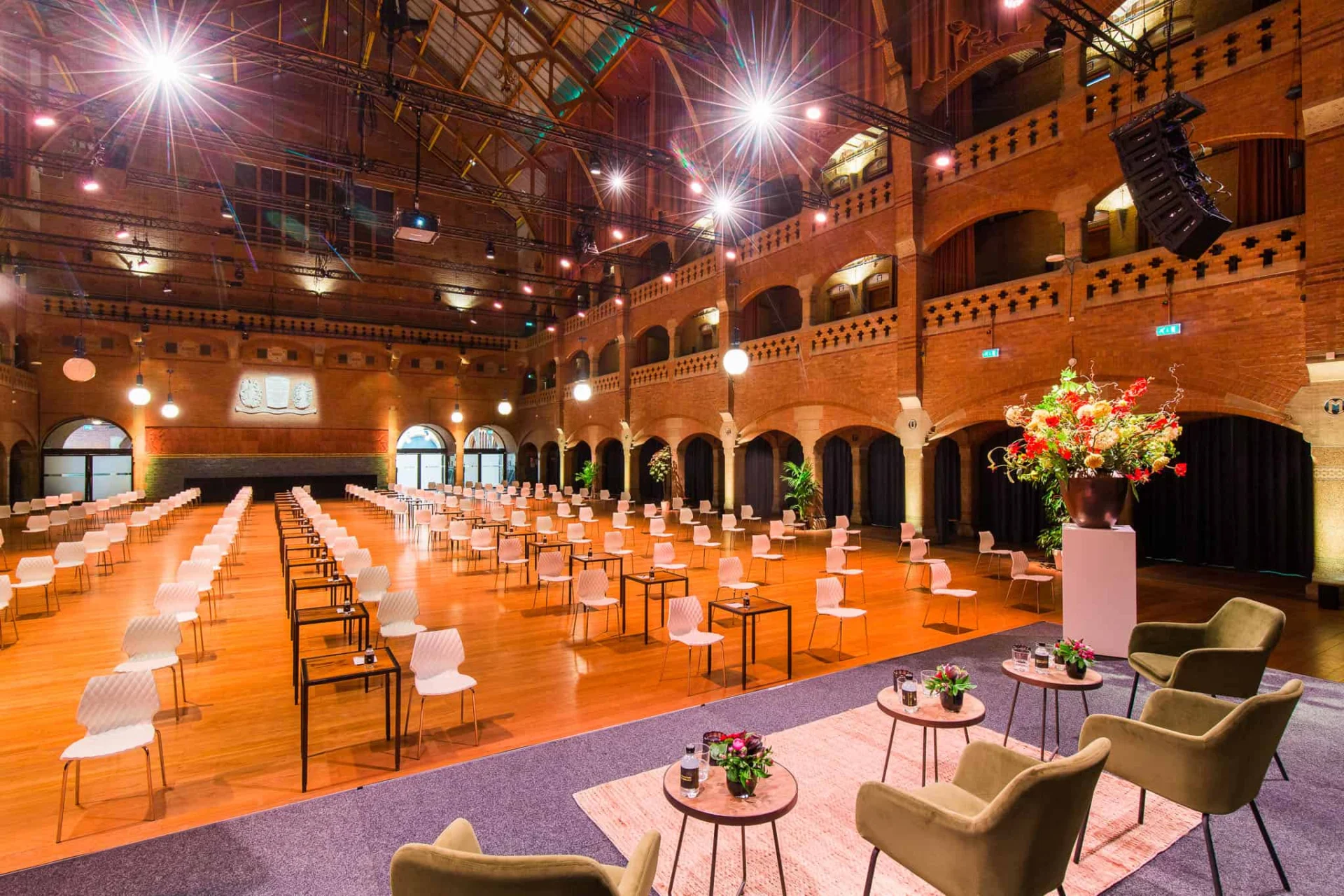 Uiteraard staat voorop dat deze ontmoetingen veilig en verantwoord plaats kunnen vinden. Het houden van voldoende afstand staat hierbij voorop. De ruimte die we bij de Beurs van Berlage aan kunnen bieden is uniek in het centrum van de hoofdstad. Onze Grote Zaal is bijvoorbeeld qua oppervlakte de grootste in het stadscentrum en in totaal is er 16.000 m2 zaalruimte in de Beurs van Berlage beschikbaar. Hierdoor is het zeker mogelijk om op een veilige manier grotere groepen te ontvangen voor Safe Meetings en Safe Dinners.