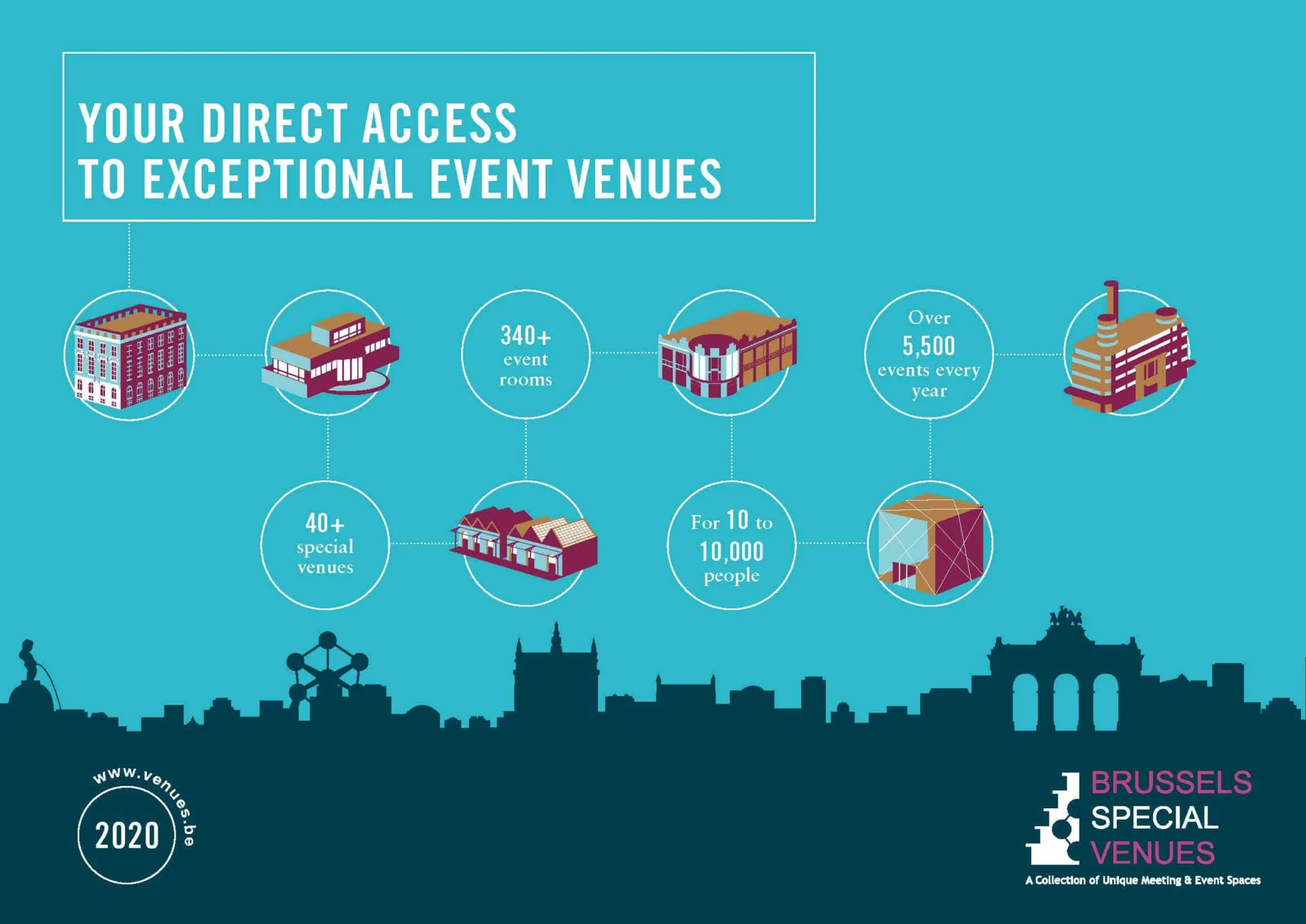 Brussels Special Venues vertegenwoordigt de grootste keuze aan uitzonderlijke eventzalen in de hoofdstad van Europa met 40+ verschillende locaties en 340+ eventzalen.
