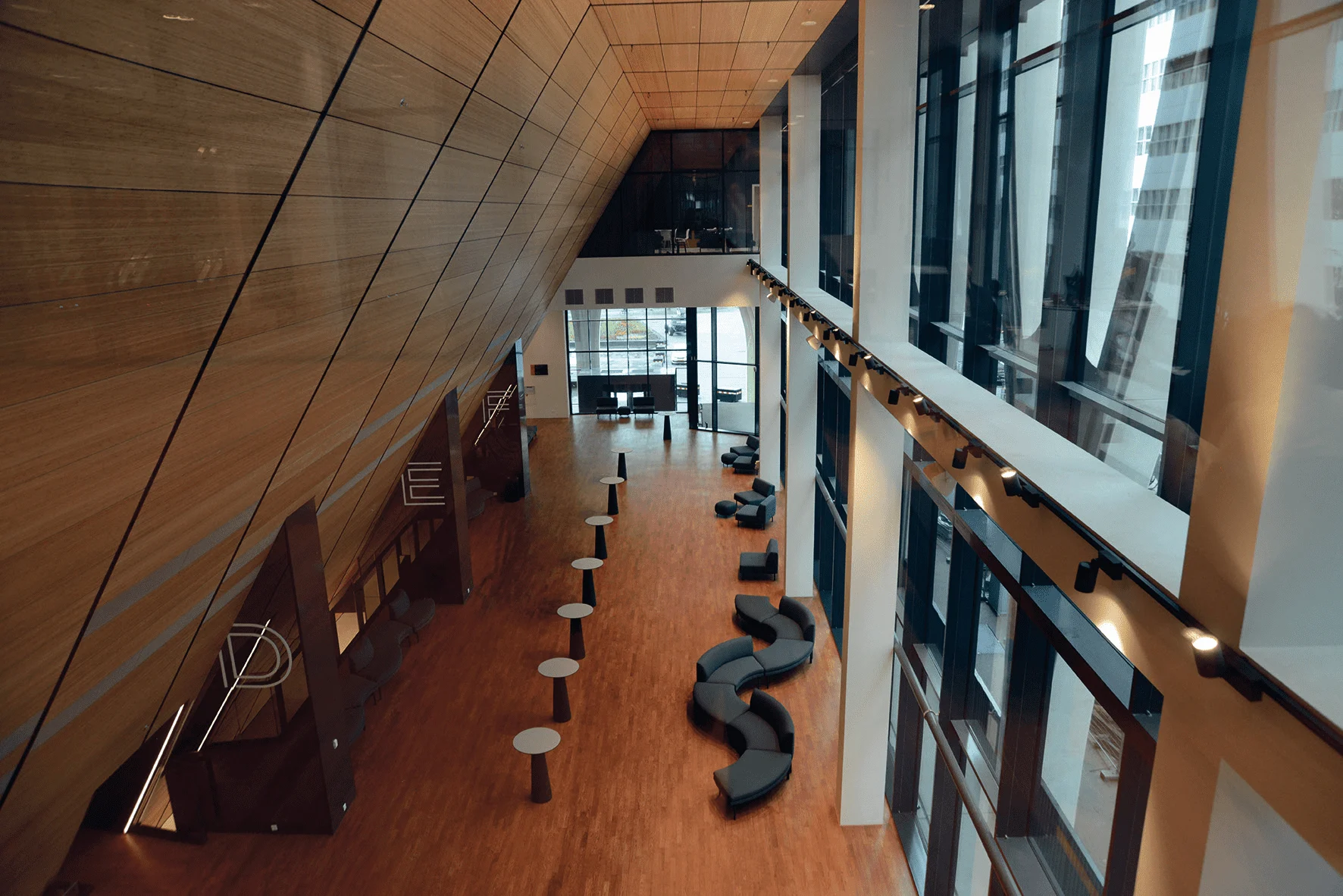 De studio is gelegen op de vierde etage. Onder begeleiding van technische support organiseer je zorgeloos een succesvol online-evenement. Bovendien is er een uniek evenementenplatform beschikbaar waar gebruik te maken is van verschillende tools, zoals een online netwerkvloer, break-out sessies, live polls, chatfunctie en een virtuele beursvloer.
