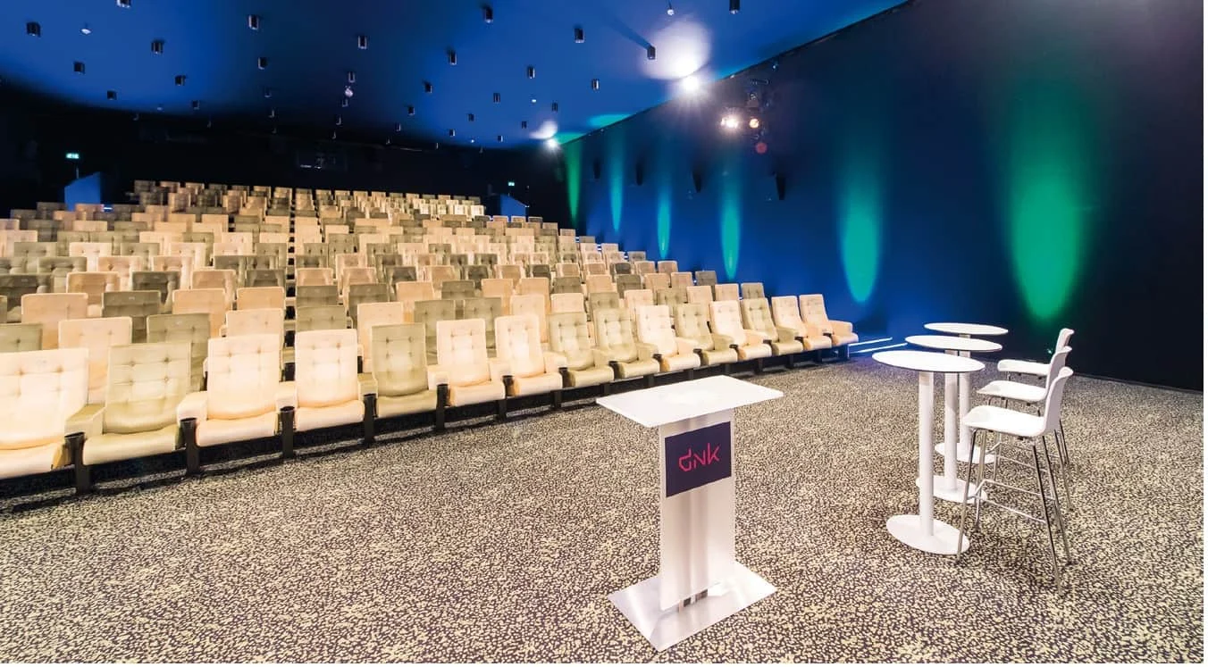 Verspreid over de drie locaties zijn er maar liefst 22 ruimtes en subruimtes die gebruikt worden voor het vertonen van films, organiseren van activiteiten, het boeken van de mooiste voorstellingen en het faciliteren van events. De drie locaties worden verbonden door een grote centrale hal. Het totaaloppervlak bedraagt ca. 17.000 m2. Niet alleen het aantal zalen maakt het verschil, maar ook de grote variatie aan zalen en ruimtes. “We hebben de afgelopen twee jaar niet stil gezeten en onze locatie met twee zalen uitgebreid. Er is nu ook ruimte bij de bibliotheek geschikt gemaakt voor zakelijke bijeenkomsten”, vertelt Hanneke. “De grootste zaal is de theaterzaal, waar u tot 850 personen kunt ontvangen. Uiteraard kuntu ook gebruik maken van het grote toneel.” Ook beschikt DNK over vijf bioscoopzalen, gezellige foyers en diverse breakoutruimtes. “Zeer aantrekkelijk is ook de studio, waar u uitstekende opnamen kunt maken voor bijvoorbeeld een productpresentatie- die u later in de bioscoopzalen aan uw klanten kunt laten zien.”