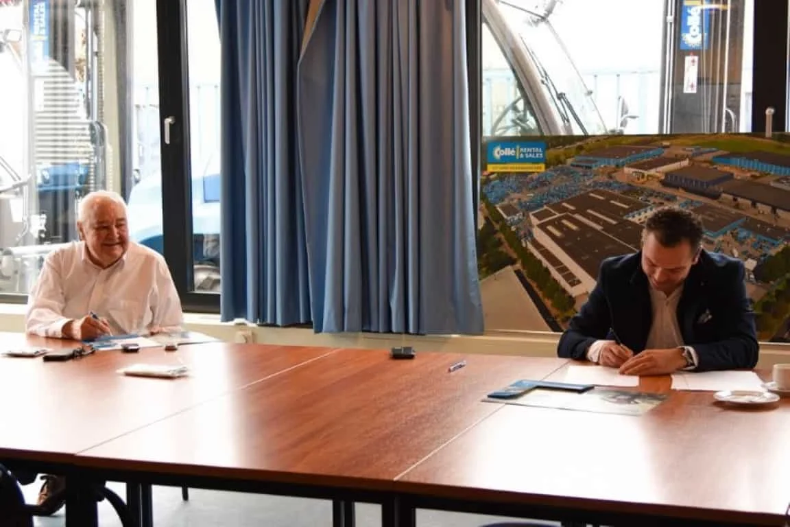 Fortron Totaal Gevelmanagement en Collé Rental & Sales zetten hun handtekening onder het langdurig partnership. Daarnaast ontvangt Fortron de sleutels van de eerste hybride Palfinger WT 450 autohoogwerker in hun eigen huisstijl.