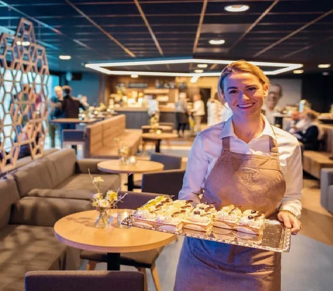 Inge vervolgt: “We zijn sterk op Thialf gericht waar we evenementen cateren, van vergaderingen tot bijeenkomsten met duizenden gasten. De afgelopen tijd hebben we alle publiekscatering erbij gekregen. De VIP-verzorging deden we al in de ‘hospitality’ ruimtes en gedeeltes van ‘de omloop’ in Thialf. Nu verzorgen we de hele omloop zodat we daar ook grotere evenementen kunnen organiseren. Thialf beschikt over grote ruimtes waar plaats genoeg is om verantwoord en veilig een event te houden, indien gewenst ook met anderhalve meter afstand, bijvoorbeeld in een theateropstelling. Daarom is Thialf uitstekend geschikt voor ieder evenement. Ondanks alles hebben we alle vertrouwen in de toekomst en kijken vooral uit naar datgene wat we het Thialf liefste doen: Mensen blij maken met culinaire verwennerij!”