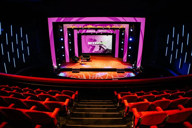 Het klassieke projectiescherm in de theaterzaal heeft plaatsgemaakt voor een groot LED-presentatiescherm met full HD-weergave. Drie indrukwekkende decorkaders, met in totaal 45 m2 LED, omlijsten het podium en kunnen ook beelden tonen. Met deze innovatieve video setting verandert het theater moeiteloos in een unieke, thematische beleving. Afhankelijk van het gekozen pakket kan je de kaders volledig laten opmaken met bewegend beeld en animaties.