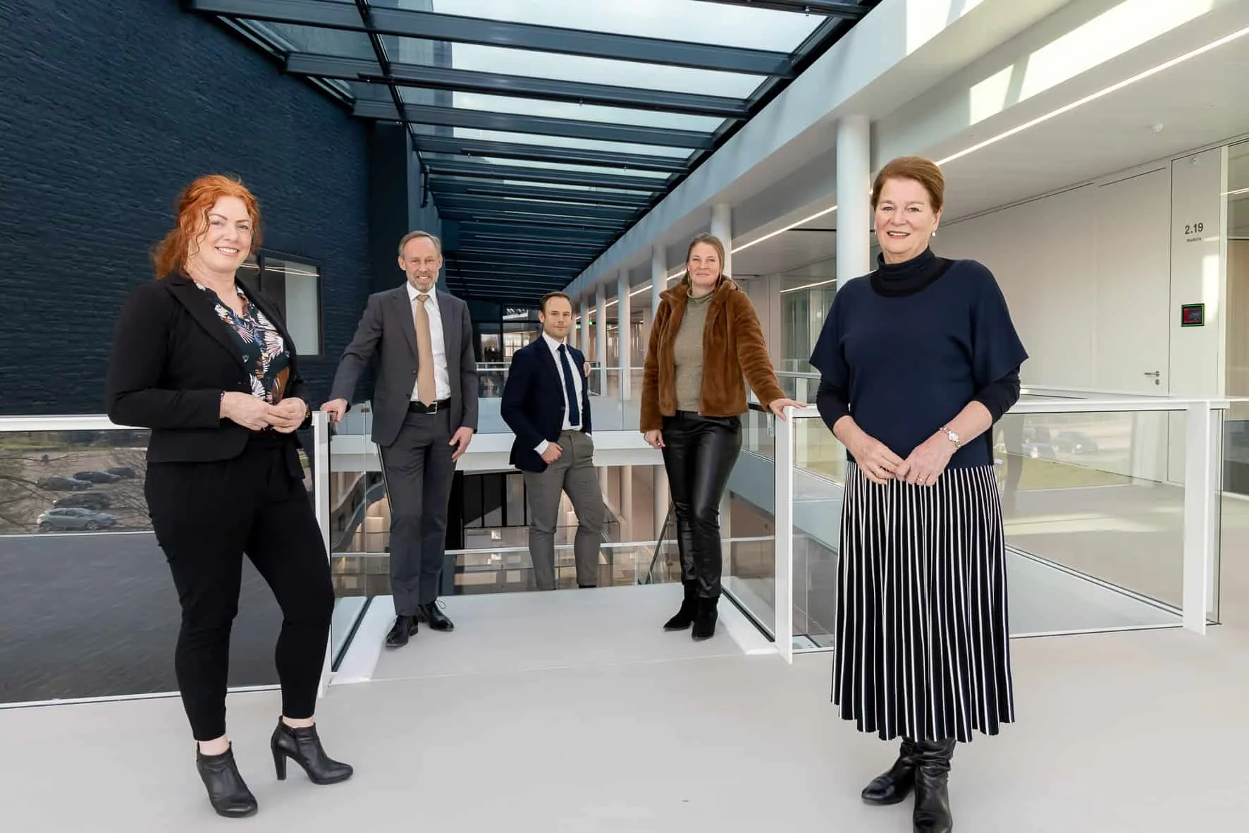 Foto v.l.n.r.: Noortje Sax - Directeur NVvP, Frank Mimpen - Commercial Director MECC Maastricht, Charles Beckers - Sr. Business Development Manager Int. Medical Associations MECC Maastricht, Liesbeth van Gangelen - congresmanager NVvP en Burgemeester Annemarie Penn-te Strake van Maastricht.