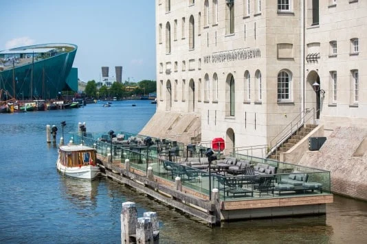 Museumbezoekers kunnen, als er geen verhuur is, gebruik maken van het terras. Zij kunnen in het café-restaurant of bij de coffee corner een consumptie halen en die op het zonnige terras aan het water nuttigen. Groepen vanaf tien personen die gebruik willen maken van het terrasponton kunnen tijdens kantooruren reserveren via events@hetscheepvaartmuseum.nl of via telefoonnummer 020 – 523 22 46. Vanwege de grootte van het ponton is het mogelijk om anderhalve meter afstand te houden.