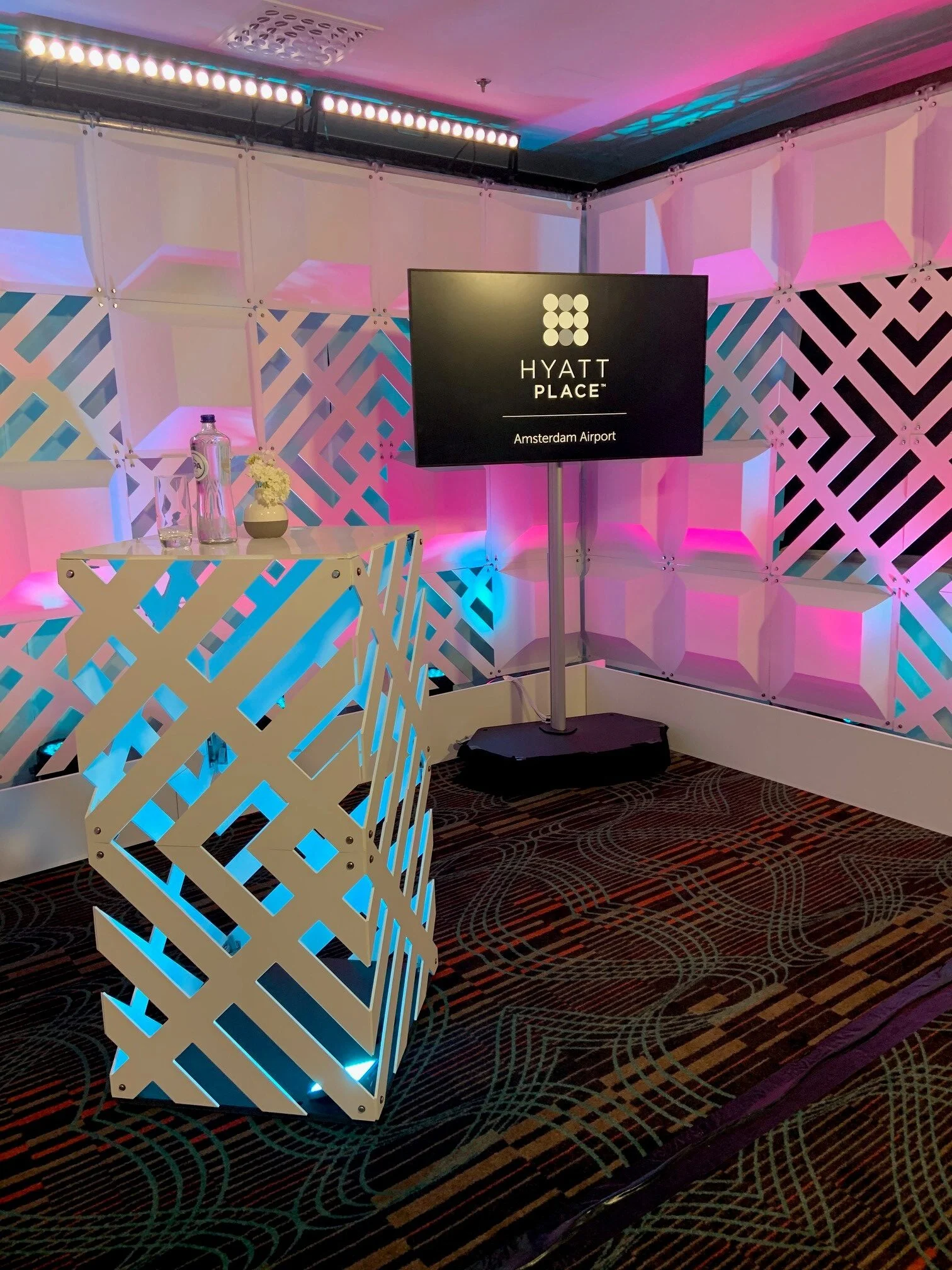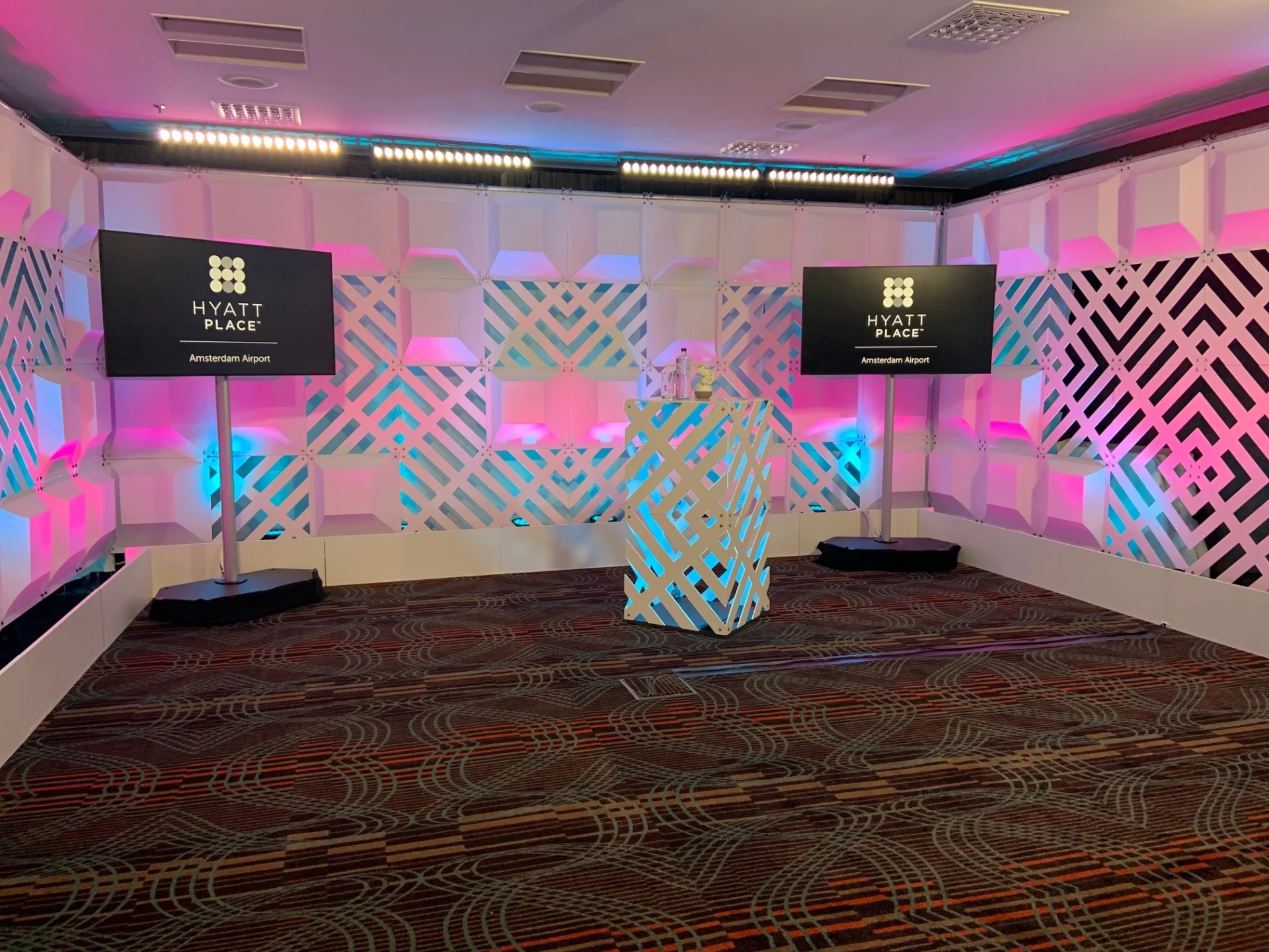 Hyatt Place Amsterdam Airport heeft een standaard vergaderzaal omgetoverd in een volledige ingerichte (live)studio voor online evenementen met de hulp van KFP Five Star Conference Service.