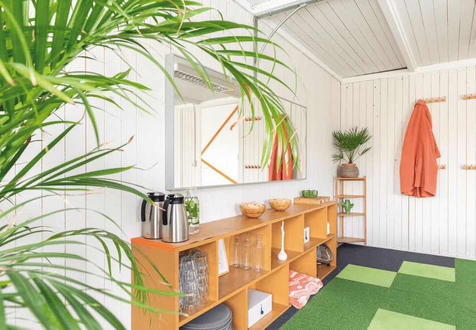 Sinds 2019 heeft NOAM zijn intrek genomen op een unieke plek in Amsterdam Noord. Waar stadslandbouw en creatieve ondernemingen samenkomen op een terrein ter grootte van een voetbalveld, staat een groot wit chalet wat de thuishaven is van NOAM Meetings. Deze locatie kan in zijn geheel worden geboekt door bedrijven. Voor 2 tot 40 personen is dit een geweldige locatie. De ruimtes zijn volledig naar wens in te richten. De 165m2 is verdeeld en beschikt over twee ruime breakout-rooms. Je beleeft een echt ‘dagje weg’ gevoel door de uitmuntende verzorging in deze inspirerende, groene omgeving. Bij NOAM Meetings staat duurzaamheid en eenvoud op een gedeelde eerste plek. De gehele dag is er beschikking over filterkoffi e en milieu- en lichaamsvriendelijke snacks. Hiervoor is speciaal gekozen. Kokos, pure chocolade, noten en groenten; het geeft je lichaam een boost die je tijdens zo’n dag nodig hebt. Als je dan ook nog eens een dosis vitamine D kunt opdoen wanneer je naar buiten stapt, wil je hier nooit meer weg, of altijd weer terug. De wensen van de gasten zijn voor ons belangrijk. We werken samen met restaurant POF en verzorgen de borrels en lunches desgewenst vegan.