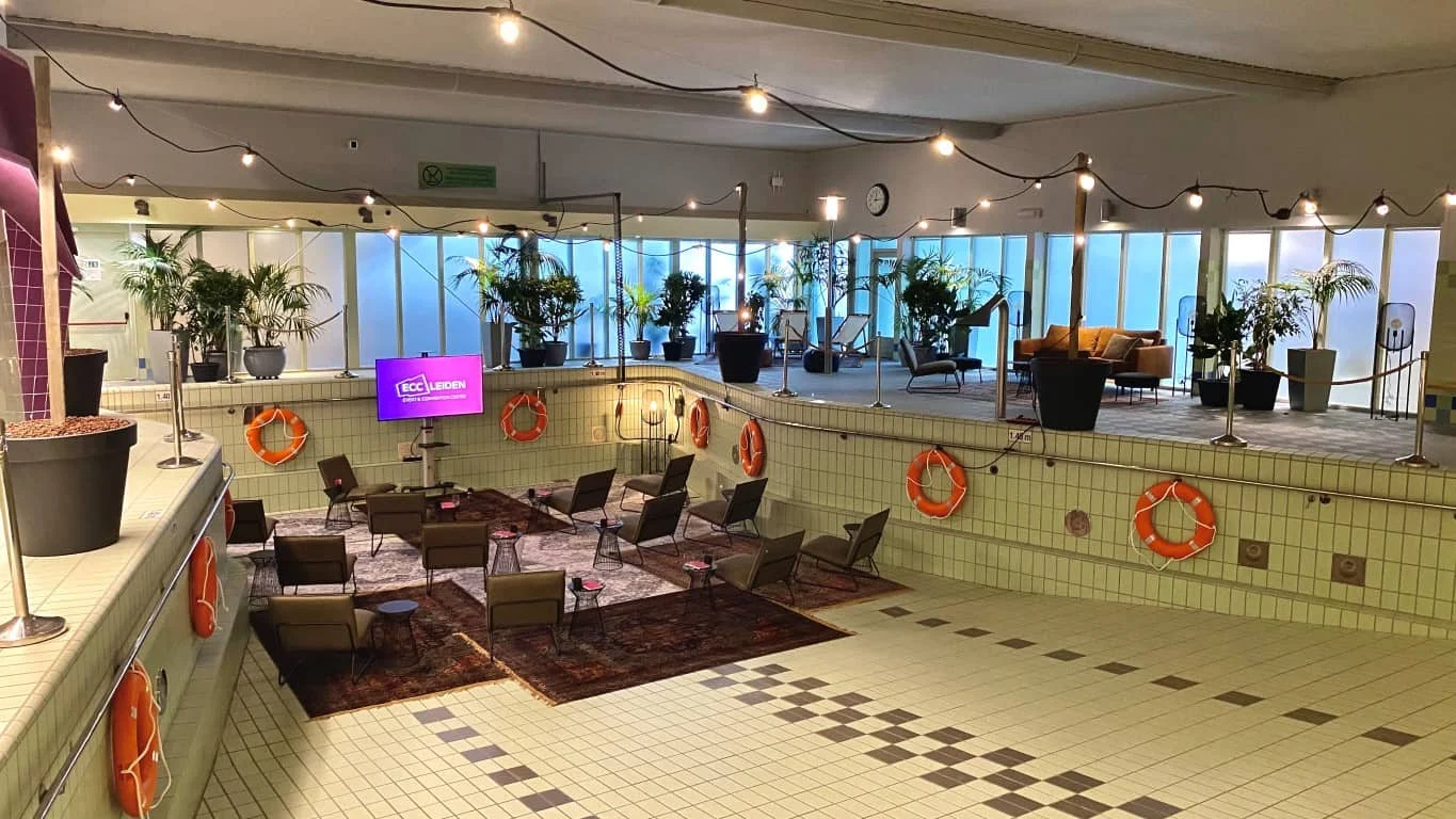 ECC Leiden, het Event & Convention Center van Leiden dat een uitbreiding heeft gevonden in de voormalige vergaderzalen van Holiday Inn Leiden, is een totaal andere koers gaan varen. Niet alleen heeft de gehele locatie een totale metamorfose ondergaan, ook de nieuwste ruimte ‘The Pool’ is onlangs toegevoegd aan het assortiment van de te huren ruimtes. Uniek, want je zit hier letterlijk op de bodem van een voormalig zwembad.