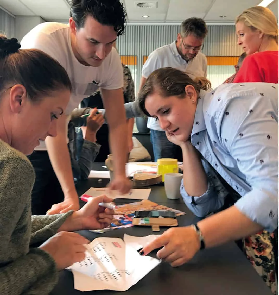 Dat moet anders, vinden Karen Sikkema en Michiel van Eunen. Zij zijn door middel van pionieren experts geworden op het gebied van gamification: op basis van spelen het leren weer leuk maken. In hun boek ‘Spelen* werkt’ laten zij zien hoe je game-based leren kunt toepassen. Dit kan in de vorm van een complete training of een allesomvattend opleidingsprogramma zijn, maar ook in één enkele werkvorm. In het boek ervaart de lezer stap voor stap hoe leren werkt en wat het belang van motivatie is. Met deze kennis kan een trainer of docent zelf aan de slag om zijn training of cursus te verrijken met spelelementen. Dat kan een enkel onderdeel zijn, maar ook een complete escaperoom. Wat het doel van de training of cursus ook mag zijn, de deelnemers zullen hun deelname nooit meer vergeten. De auteurs maken gebruik van het zogeheten Game-based Learning Design Wheel. Dit is een ontwerptool die speciaal is ontwikkeld voor het maken van lesmateriaal op basis van spelen. In negen stappen wordt een beeld geschetst van hoe je cursisten spelenderwijs kennis kunt laten opdoen. Eén van die stappen wordt gevormd door je eigen leerdoelen. Andere stappen zijn onder andere verhalen, speldoelen, motivatie en fun. Uiteraard komt ook het spelen zelf als stap aan bod. Er wordt in het boek een duidelijk onderscheid gemaakt tussen wat echt game-based learning is en wat niet. Een heel duidelijk voorbeeld van nep is het maken van droge sommen of het lezen van saaie teksten, waarvoor je dan voor de moeite een medaille of een x-aantal punten krijgt. Een beloning is immers niet hetzelfde als spel. Volgens de auteurs is het kenmerk van goede game-based learning dat het leren zodanig is verweven in het spel dat leerdoelen en speldoelen met elkaar samenvallen en de speler eigenlijk niet direct in de gaten heeft dat hij aan het leren is en er uiteindelijk toch de kennis opdoet waarvoor het spel bedoeld is.