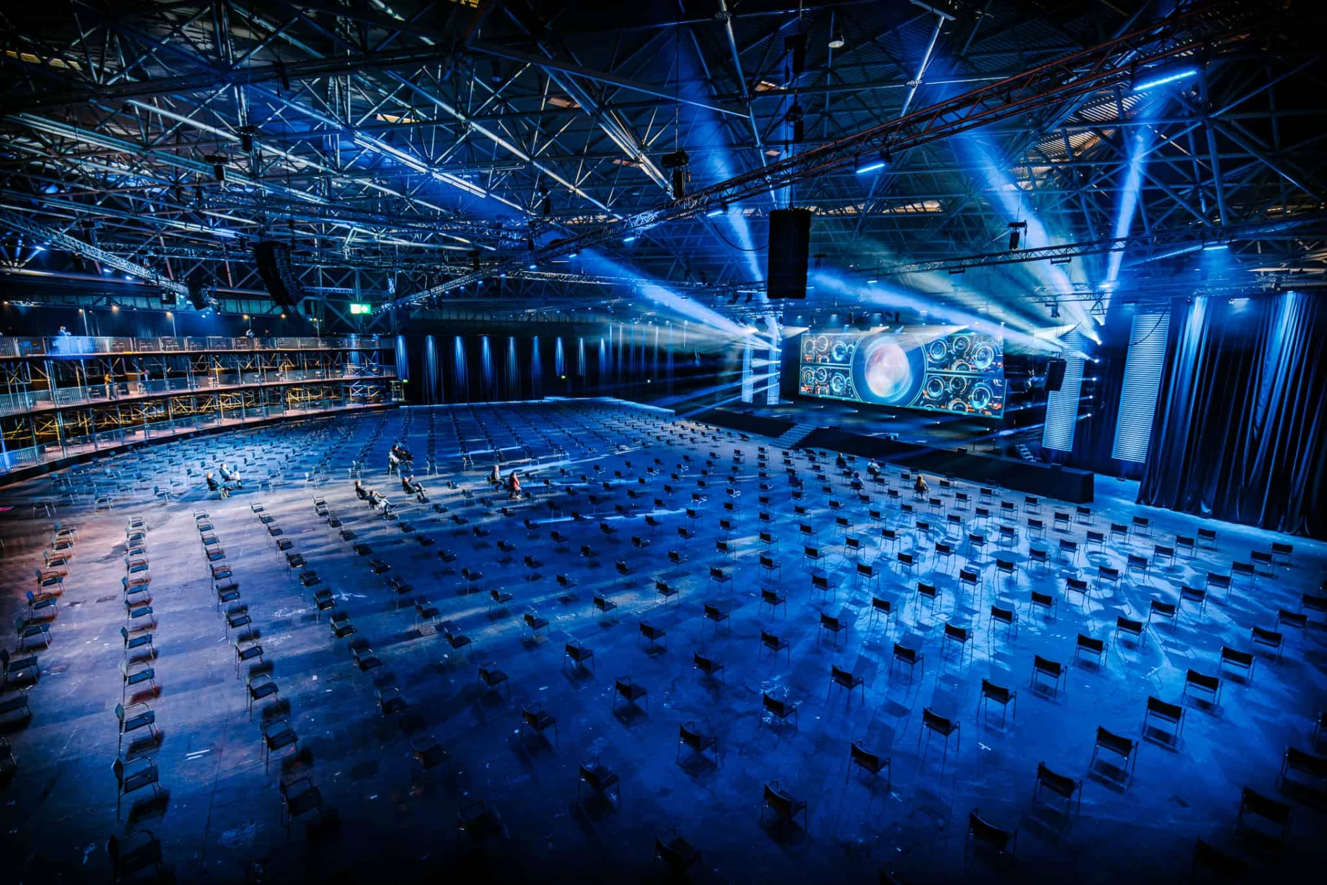 Bart Roelen, COO van Unlimited Productions, licht toe: “Samen met de RAI en partners hebben we een set ontwikkeld die multifunctioneel inzetbaar is voor vele toepassingen zoals zakelijke evenementen, live shows en theatervoorstellingen. Met de standaard voorzieningen hangt er al een hele mooie set waar iedereen mee uit de voeten kan. We willen met dit concept de organisatoren van evenementen helpen om snel weer mooie evenementen in de RAI neer te zetten.”