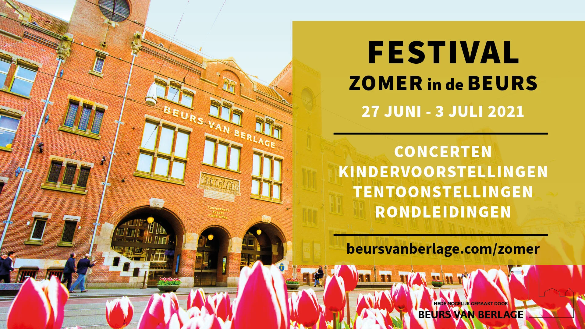 Festival Zomer in de Beurs. Te zien in de Beurs van Berlage Amsterdam. Zondag 27 juni t/m zaterdag 3 juli 2021. www.beursvanberlage.com/zomer