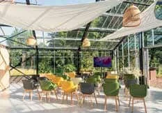 Er hangt een kalme en fijne sfeer, waardoor het de ideale plek is voor het ontstaan van nieuwe ideeën of het loslaten van oude patronen. Naast dat de panden zo groen mogelijk zijn heeft groen vergaderen nog een ander voordeel, onderzoek heeft aangetoond dat vergaderen in de natuur leidt tot het nemen van betere beslissingen.