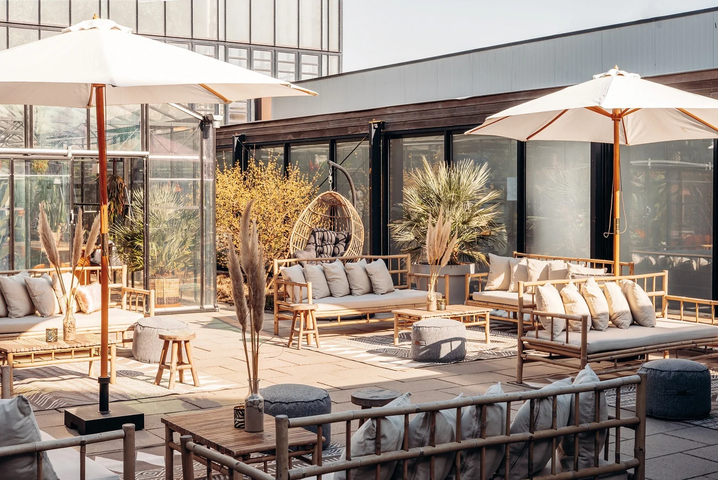 Time for sunshine! Bij goed weer vindt u vast een heerlijk plekje op The Terrace van ECC Leiden, een heerlijke breakout spot met een fl inke dosis bamboe, fijne hangstoel, poefjes en kleden. Inclusief terrasbar en loungemuziek en ook geschikt om lekker uw lunch te nuttigen in de pauze van uw meeting. Zit de temperatuur of het weer niet mee? Dan kunt u altijd uitwijken naar de Greenhouse, maar daarover later meer.